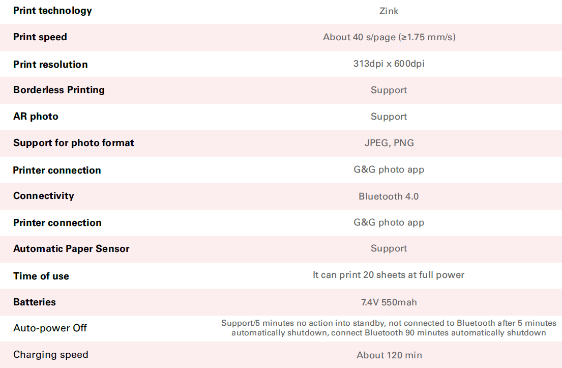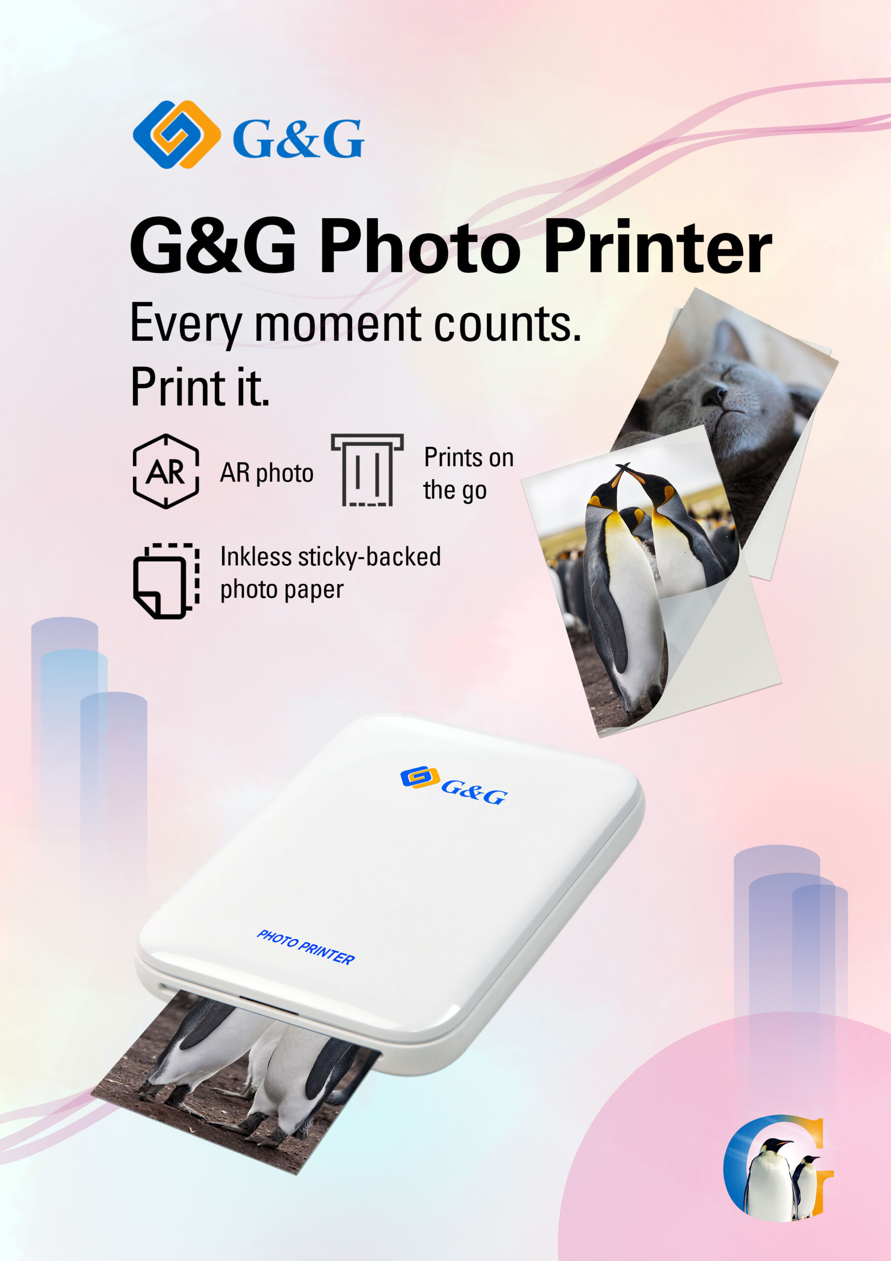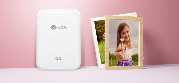 G&G pocket photo printer is a tiny printer which can be put in your pocket.