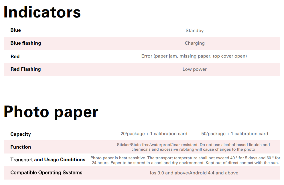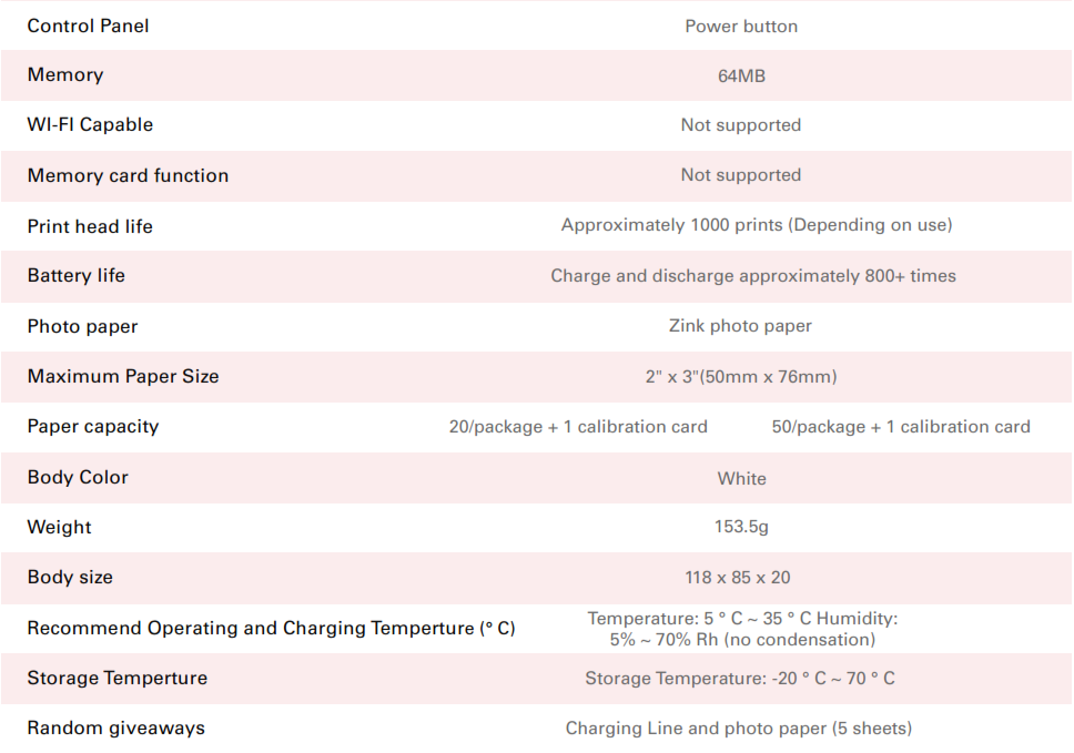 By using ZINK photo paper, it can print true-to-life photos in 1-2 minutes with zero ink.